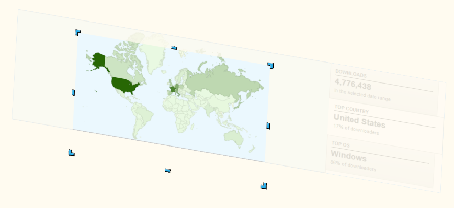 The example shows a rotated and sheared Graphic Object that gets interactively cropped to show only a part of the world map.